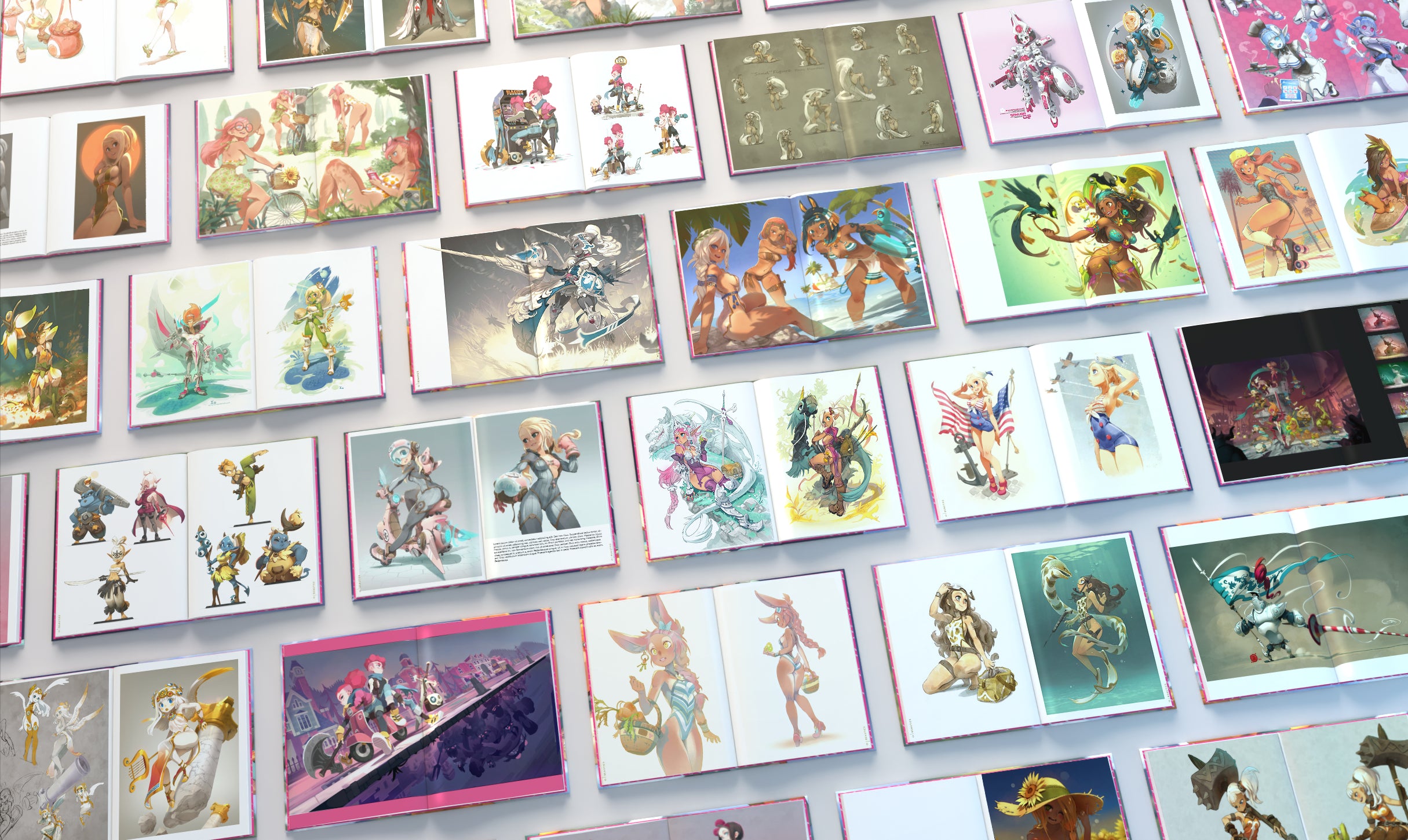 Une grande partie de mon livre est consacrée à mes pin-ups. Si parfois, elles ne font qu’exposer leurs courbes, j’ai essayé le plus souvent de leur créer un petit univers dont elles pourraient être l’héroïne. Inspirées par l’Heroic-fantasy, la science-fiction, le jeu vidéo ou encore par de petites tranches de vie, j’ai tenté de varier les thèmes tout en veillant à les rendre à la fois sexy et indépendantes. Viennent ensuite quelques uns des travaux de character-design et d’illustration effectués pour Ankama, et pour le jeu indépendant "Young souls". Le livre se termine par quelques pages de croquis préparatoires ou juste crobardés pour le plaisir.